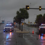 Police block off a bridge leading to the barrier island of St. Pete Beach, Fla., ahead of the arrival of Hurricane Milton, in South Pasadena, Fla., Wednesday, Oct. 9, 2024.