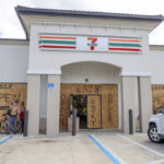 A store boards up Tuesday but remains open in preparation for Hurricane Milton in New Port Richey, Fla.