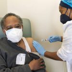 “There’s distrust in our community. We can’t ignore that,” said Rev. James Coleman of All Nations Baptist, who was vaccinated along with Smith. “The church, and particularly the Black church, is essential. … That’s what pastors do.”