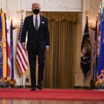 Speaking in the White House East Room, Biden began his 24-minute address by honoring the “collective suffering” of Americans over the past year and then offered them a vision for a return to a modicum of normalcy this summer.