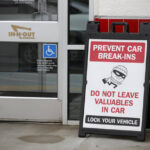 A sign warns patrons of car break-ins at the In-N-Out restaurant off Hegenberger Road in Oakland, Calif.. The burger joint in a busy corridor near the Oakland International Airport will close on March 24, 2024.