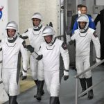 Strapped into the capsule atop the Falcon rocket were two NASA astronauts, one Russian cosmonaut and one astronaut from the United Arab Emirates. They had to wait until all the fuel was drained from the rocket — an hourlong process — before getting out.