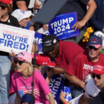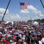 A crowd waits for Republican presidential candidate former President Donald Trump to speak at a campaign event in Butler, Pa., on Saturday.