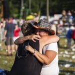 Supporters react after former President Trump was shot at during a rally on Saturday at Butler County Fairgrounds.