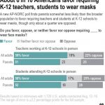 In a reflection of that polarizing debate, the poll finds a wide partisan divide. About 3 in 10 Republicans said they favor mask requirements for students and teachers, compared with about 8 in 10 Democrats. There was a similar split over vaccine mandates in schools.