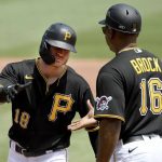 The Pirates cut their deficit in half in the third. Tyler Heineman drew a leadoff walk, advanced to third on Bryan Reynolds’ double and scored on a Ke’Bryan Hayes grounder to short. Ben Gamel followed with a single to left to score Reynolds and make it 4-2.