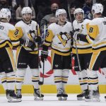 The Penguins’ captain got in on the act at 11:15 of the third period with his third goal. Corralling the puck at the left point of the offensive zone, Guentzel snapped a pass to Letang above the right circle. With Crosby darting off the left wall, Letang slid the puck below the left circle where Crosby leaned down and lifted a forehand shot over a helpless Demko’s blocker on the near side. Letang and Guentzel were credited with assists.