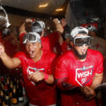 Game 1 is Thursday in Los Angeles, and some in the sellout crowd of 42,993 chanted “Beat LA! Beat LA!” as members of the Nationals began their celebration on the infield with family members.