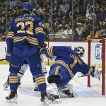 At the 11-minute mark of the third period, the Sabres finally got on the scoreboard with a rare double deflection. From the right point of the offensive zone, Sabres defenseman Casey Fitzgerald wound up and golfed a one-timer toward the cage. Positioned near the crease, Sabres forwards Kyle Okposo and Peyton Krebs each deflected the puck slightly with Krebs touching it last and putting it past goaltender Casey DeSmith’s blocker for his second goal. Assists went to Okposo and Fitzgerald.