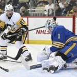 Off some precision passing, Penguins forward Jake Guentzel dealt the puck from the left of the Buffalo cage to the slot for Crosby, who swatted a one-timer on net. Roookie goaltender Ukko-Pekka Luukkonen rejected Crosby’s shot but booted out a rebound to the right circle where forward Evgeni Malkin leaned down and fired a quick wrister back on cage. Following another save by Luukkonen, forward Rickard Rakell claimed another rebound and lifted a wrister over the flummoxed goaltender for his 12th goal of the season. Malkin and Crosby had assists.
