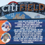 With a message that filled up one Citi Field scoreboard about 15 minutes before Sunday night’s game against Atlanta, the Mets expressed deep regret to Jim Gosger and Jesse Hudson for displaying their names and images in error during the “We Remember” segment of Saturday’s ceremony.