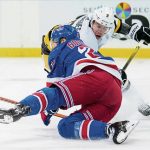Controlling the puck low in the Penguins’ left corner, Zibanejad backhanded a pass to the front of the crease where Vatrano, mostly uncontested, swiped a forehand shot through Jarry’s five hole. Zibanejad and Kreider netted assists. Immediately afterward, the Penguins called a timeout to get organized.