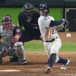 Suzuki sent Verlander’s 100th pitch sailing above the seats in left field to start the inning. Ryan Pressly, who left Game 6 of the ALCS with a knee injury, took over and didn’t look right from the start.