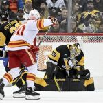 The Penguins appeared to take a two-goal lead with a would-be score by forward Bryan Rust at 9:34 of the first period, but the Flames issued a coach’s challenge on the basis of the sequence being offside and were successful.