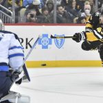 First, forward Kasperi Kapanen scored his ninth goal at the 6:55 mark when a pass by linemate Evgeni Malkin deflected off his left skate and into the cage.
