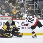 Malkin appeared to score again on a power-play opportunity at 14:31 of the first, but the Senators issued a coach’s challenge, claiming the sequence to be offside, and wiped out the score. Despite keeping it a one-goal game, the Senators pulled Forsberg and replaced him with former Penguins prospect Filip Gustavsson.