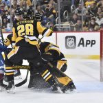 Chasing down a dump-in near the Penguins’ right corner, Avalanche forward Andre Burakovsky claimed the puck, fended off Penguins defenseman Brian Dumoulin and dished a pass to linemate Nathan MacKinnon darting in from the right point. Taking the puck deep to the right of the cage, MacKinnon slipped a forehand pass through defenseman Kris Letang’s skates with the intention of connecting with linemate Mikko Rantanen. Rust spoiled those designs with a dutiful backcheck but inadvertently deflected the puck into his own cage with his stick. MacKinnon was credited with his 23rd goal of the season while Burakovsky, a former Erie Otters star, and Rantanen had assists.