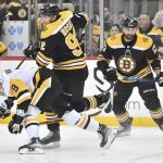 Reading the ice like an instruction manual, Marino snapped a centering pass up ice to Carter, who adroitly redirected the puck to the left wing, allowing Zucker to attack with momentum. Fending off a diving poke check attempt by 6-foot-6 Bruins defenseman Brandon Carlo, Zucker lifted a wrister over Swayman’s glove hand for his eighth goal. Carter and Marino had assists.