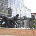 The team declined to comment on the statue outside of the arena of co-owner Mario Lemieux, which was vandalized with spray paint during the protests.