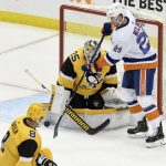 The teams exchanged goals late in the third period. After Islanders forward Brock Nelson slipped a wrister from the slot under Jarry’s glove at 15:50, Penguins forward Kasperi Kapanen fired a wrister from the right circle past goaltender Ilya Sorokin’s blocker 31 seconds later.