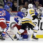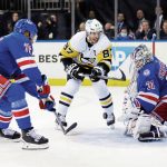 Controlling the puck at the high slot, Fox offloaded it to Panarin on the right wing. Moving into the right circle, Panarin lined up Marino and Letang for a screen and snapped a wrister past Jarry’s glove on the near side to give his team a second-round matchup with the Carolina Hurricanes. Fox and Zibanejad had assists.