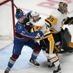 The Avalanche needed all of 20 seconds to reclaim the lead. Surging up the right wing into the offensive zone, Avalanche forward Alex Newhook lost possession of the puck on a poke check by Letang. A strange display in physics led to the puck coming to a complete stop above the right circle and allowed Avalanche forward Nicolas Aube-Kubel to step up and rocket a slap shot under Letang’s right leg and past Jarry’s left skate for his eighth goal. Newhook and linemate Nico Sturm had assists.