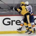 Late in the first period at the 19:05 mark, the Islanders took advantage of a defensive miscue by the Penguins’ top pairing of Letang and Brian Dumoulin and tied the game. With each Penguins defenseman pinching in aggressively, Islanders forward Anthony Beauvillier was able to take advantage of Penguins forward Jake Guentzel in a one-on-one battle and collected his second goal by putting a wrister over Jarry’s blocker.