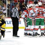After infractions by forward Jason Zucker (hooking at the 1:03 mark) and Petry (delay of game at 2:36) the Penguins found themselves down by two men. With ample space in the offensive zone to operate, Devils forward Jack Hughes settled a puck high in the right circle, surveyed his options and snapped a pass to the far side of the crease where Meier was easily able to tap in a forehand shot past Jarry’s right skate. Hughes had the lone assist.