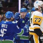 After Horvat beat Poehling on an offensive zone draw in the Penguins’ right circle — Poehling lost his stick and right glove in the process — Canucks defenseman Oliver Ekman-Larsson controlled the puck at center point, surveyed for a shooting land and lobbed a wrister, positioned in the crease, Horvat deflected the puck past Jarry’s right elbow. The lone assist was claimed by defenseman Oliver Ekman-Larsson.