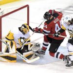A rare goal by Penguins reserve forward Colton Sceviour at 17:36 of the second period gave the Penguins another lead, 3-2. Batting a rebound of midair, Sceviour collected his third goal of the season and first since Jan. 19.