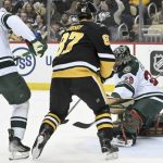 After Penguins forward Sidney Crosby beat Wild forward Frederick Gaudreau on a draw in Minnesota’s left circle, forward Jake Guentzel swept the puck to the left point for defenseman Brian Dumoulin. From there, Dumoulin offloaded the puck to the opposite point for Letang, who surged up the wall around pressure from Wild forward Marcus Foligno and elevated a wrister that toasted Fleury’s glove hand on the near side. Dumoulin and Guentzel had assists.
