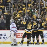 His counterpart, Shesterkin, who was 3-1-0 against the Penguins during the regular season with a 1.01 goals against average and a .960 save percentage, absorbed Monday’s loss after making only 24 saves on 30 shots. For the series, he has a 1-2 record, a 4.26 goals against average and a .905 save percentage.