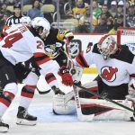 The Penguins finally found a way to deny Bratt a goal when they allowed Devils forward Yegor Sharangovich to score his 11th goal only 57 seconds later. After Penguins defenseman Marcus Pettersson tumbled in his own right corner and lost the puck, Devils defenseman P.K. Subban settled it at the right point then slid a pass below the right circle. Facing no resistance, Sharangovich scorched a wrister past Jarry’s glove on the near side. Subban had the only assist.