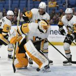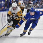 Thompson struck again on a power-play opportunity only 1:01 into the third period. After Sabres forward Jeff Skinner drove the puck deep on the Penguins’ end boards, linemate Alex Tuch claimed possession, emerged to the left of the cage and slipped a forehand pass to the right circle for Thompson who ripped a wrister past a scrambling DeSmith. Tuch and Skinner claimed assists.