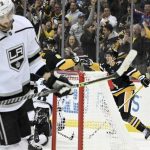 Working off a cycle out of the left corner of the Kings’ zone, Penguins forward Sidney Crosby backhanded an errant pass attempt to the left circle, where Kings forward Adrian Kempe inadvertently tapped the puck to the right of the crease. Letang pinched in to chase down the puck and slid it into the blue paint. As Petersen overplayed Letang, Guentzel battled for position with Kings defenseman Drew Doughty as well as forward Anze Kopitar and shuffled the puck into the vacant cage with the heel of his stick. Letang and Crosby claimed assists.