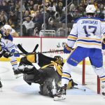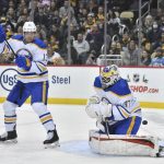 Settling a puck above the left circle, Penguins defenseman Kris Letang distributed a pass to the right circle for Rodrigues. Turning toward the cage, Rodrigues lifted a wrister past kneeling Sabres defenseman Jacob Bryson. The puck hit off the underside of goaltender Malcolm Subban’s right arm and caromed into the net. Letang and forward Sidney Crosby had assists.
