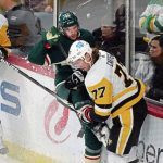 After Crosby beat Wild forward Tyson Jost on a draw in Minnesota’s left circle, Letang settled the puck in the high slot, touching off a passing sequence to forward Bryan Rust (left point), then to Crosby (left corner), then to Penguins forward Evgeni Malkin (right corner) and finally Letang (right faceoff dot), who blasted a one-timer on net. Talbot made a save with his left leg but allowed a rebound to slide to the slot where Guentzel cleaned it up with a forehand shot for his 32nd goal. Letang and Malkin claimed assists.