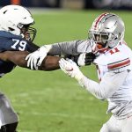 “Just getting those (repetitions) in the game and realizing the speed its played at in a big-time level, I’ve seen him improve a lot out there,” Fries said. “He’s improving every week. He’s coming off the ball better. He’s playing better in pass (protection) with his punch. Just getting those (repetitions) and being a young guy in the Big Ten is definitely going to benefit him. He’s getting a lot better. I’m really excited to see his future.”