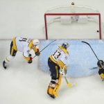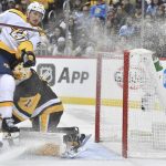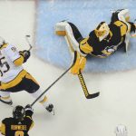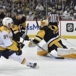The Predators took their only lead 4:31 into the third period. Off a two-on-one rush, Predators forward Colton Sissons whipped a wrister on net from the Penguins’ right circle. After DeSmith booted out a rebound, Sissons corralled the puck on right wing along the goal line and flicked a backhander back at the cage that hit off the far post and bounced to the front of the crease. Penguins defenseman Mike Matheson claimed the puck and lifted a weak clearing attempt that was intercepted above the hashmarks by Predators forward Nick Cousins. Using Matheson as a screen, Cousins gripped and ripped a wrister past DeSmith’s blocker for his eighth goal. There were no assists.