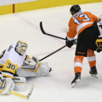 A breakaway goal by forward Scott Laughton against goaltender Tristan Jarry at 2:40 of overtime gave the Flyers the victory.