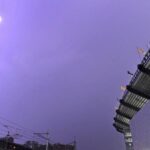 Lightning was spotted in the city. Rain began to fall approximately 8:25 p.m., quickly gaining in intensity.