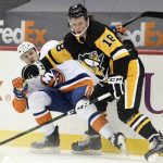 It became a 2-0 game late in the second period at the 18:01 mark. A wrister from the Islanders’ left circle by Penguins defenseman Mike Matheson was denied by Varlamov, but a rebound deflected to the right of the crease, where Penguins forward Teddy Blueger cleaned up the garbage for his third goal.