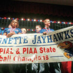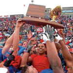 Jeannette’s Terrelle Pryor (middle) and teammates celebrate the PIAA Class AA Championship victory over Dunmore at Hershey Stadium Dec. 15, 2007. Jeannette defeated Dunmore, 49-21, to claim the school’s first state championship.