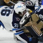 Barron was injured in the first period during a big scramble in front of the Vegas Golden Knights’ net in Game 1 of the teams’ Western Conference first-round series, which Winnipeg won 5-1. As players collapsed around the front of the net in pursuit of a loose puck, Vegas goalie Laurent Brossoit’s skate cut Barron.