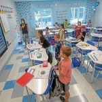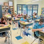 Fifth-graders at Kiski Area Upper Elementary School settle into class Thursday on the first day of school.