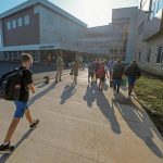 Kiski Area High School students Thursday on the first day of school. The school board voted to make face coverings and masks optional.