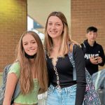 Deer Lakes High school students (left to right) Gianna Sites and Kellie Strate pose for a picture on the first day of school, Aug. 25, 2021.