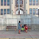 “Welcome Back” was written in chalk on the stairs in front of Highlands Elementary School in Tarentum on Thursday, Aug. 26, 2021.