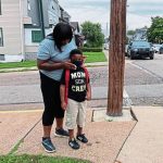 Ashley Pirozzi, of Arnold, takes a picture of her son, David Bagley, 8, at the sign outside H.D. Berkey Elementary School in Arnold on Tuesday, Aug. 31, 2021.